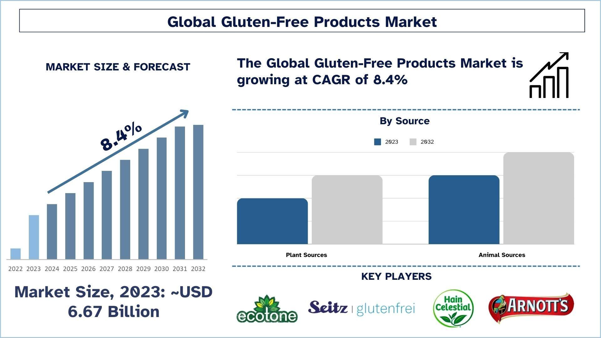 According to a new report by UnivDatos, The Global Gluten-Free Products Market was valued at USD 6.67 billion in 2023 and is expected to grow at a strong CAGR of around 8.4% during the forecast period (2024-2032) owing to the demand for gluten-free products that are also organic and free from genetically modified organisms.