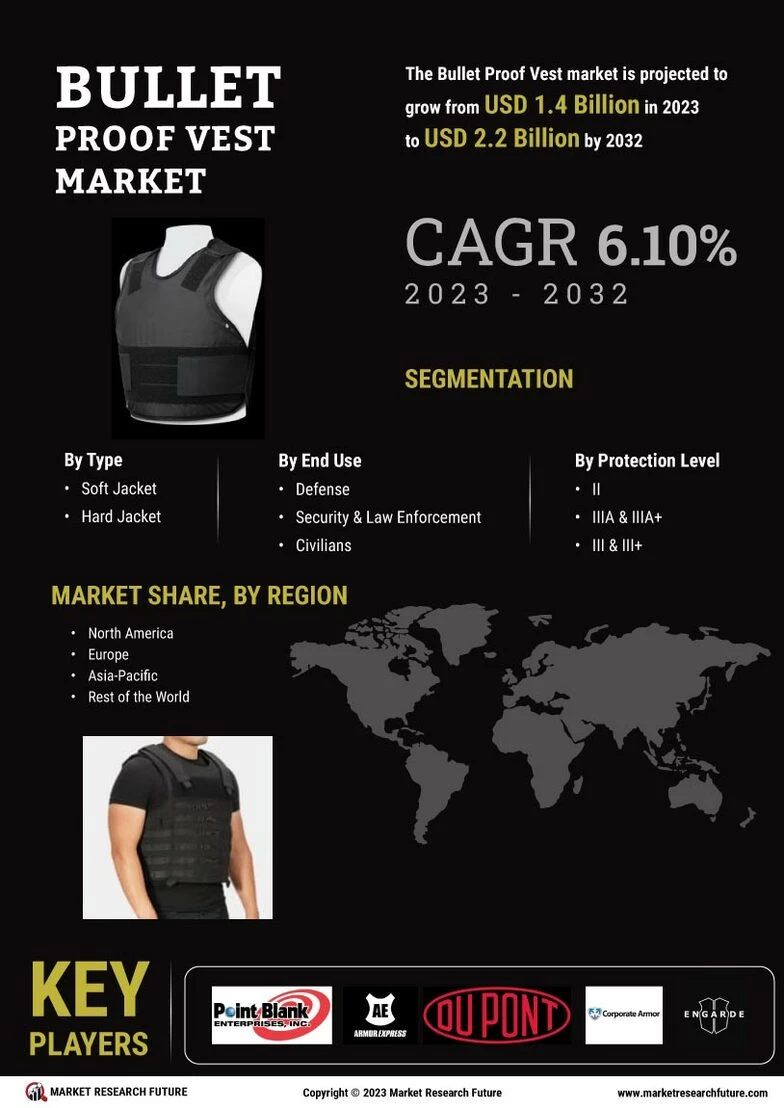 Key Players and Market Dynamics: Leading companies in the Bullet Proof Vest market include Point Blank Solutions, Inc., Armor Express, DuPont, U.S. ARMOR CORPORATION, EnGarde, MKU LIMITED, ARGUN s.r.o., Infidel Body Armor, Seyntex N.V, MARS Armor, VestGuard UK Ltd, BulletSafe Bulletproof Vests, COMPASS INTERNATIONAL CORP. LTD, and Canadian Armour Ltd. These companies are actively engaged in research and development to expand their product lines and enhance market presence through strategic initiatives such as new product launches and collaborations.
