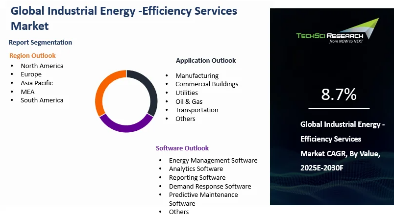 “Industrial Energy -Efficiency Services Market – Global Industry Size, Share, Trends, Opportunity, and Forecast, Segmented By Software (Energy Management Software, Analytics Software, Reporting Software, Demand Response Software, Predictive Maintenance Software, Others), By Application (Manufacturing, Commercial Buildings, Utilities, Oil & Gas, Transportation, Others), By Region, By Competition, 2020-2030F” has evaluated the future growth potential of Industrial Energy -Efficiency Services Market and provides statistics & information on market size, structure, and future market growth. The report intends to provide cutting-edge market intelligence and help decision makers take sound investment decisions. Besides the report also identifies and analyzes the emerging trends along with essential drivers, challenges, and opportunities in Industrial Energy -Efficiency Services Market.