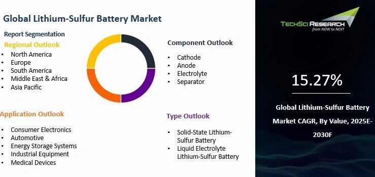 “Lithium-Sulfur Battery Market - Global Industry Size, Share, Trends, Opportunity, and Forecast, Segmented By Component (Cathode, Anode, Electrolyte, Separator), By Type (Solid-State Lithium-Sulfur Battery, Liquid Electrolyte Lithium-Sulfur Battery), By Application (Consumer Electronics, Automotive, Energy Storage Systems, Industrial Equipment, Medical Devices), By Region & Competition, 2020-2030F,” has evaluated the future growth potential of Global Lithium-Sulfur Battery Market and provides statistics & information on market size, structure, and future market growth. The report intends to provide cutting-edge market intelligence and help decision makers take sound investment decisions. Besides the report also identifies and analyzes the emerging trends along with essential drivers, challenges, and opportunities in Global Lithium-Sulfur Battery Market.