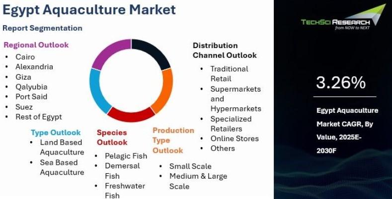 “Egypt Aquaculture Market By Type (Land Based Aquaculture, Sea Based Aquaculture), By Species (Pelagic Fish, Demersal Fish, Freshwater Fish), By Production Type (Small Scale, Medium & Large Scale), By Distribution Channel (Traditional Retail, Supermarkets and Hypermarkets, Specialized Retailers, Online Stores, Others), By Region, By Competition, Forecast & Opportunities, 2020-2030F”, has evaluated the future growth potential of Egypt Aquaculture Market and provides statistics & information on market size, structure and future market growth. The report intends to provide cutting-edge market intelligence and help decision makers take sound investment decisions. Besides, the report also identifies and analyzes the emerging trends along with essential drivers, challenges, and opportunities in Egypt Aquaculture Market.