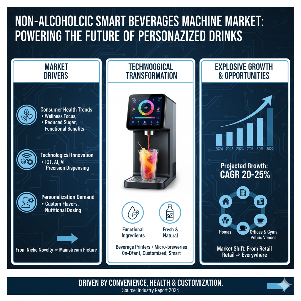 - What are Non-Alcoholic Smart Beverages Machines? These are connected, digitally controlled appliances that create customized non-alcoholic drinks on demand. They go far beyond mixing syrups with carbonated water. They can: