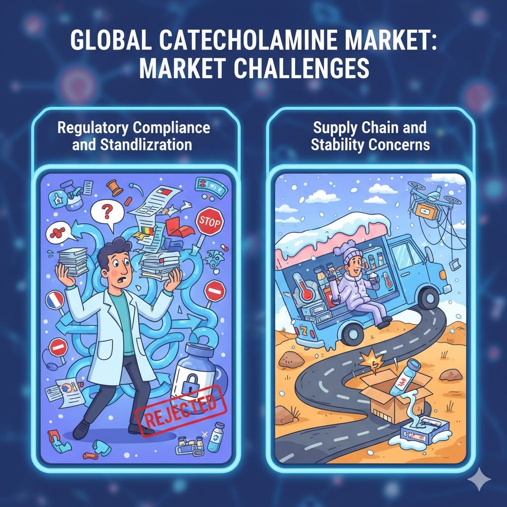 The Global Catecholamine Market faces challenges related to varying regulatory frameworks. It requires alignment across regions to ensure safety and efficacy. Delays in approvals can restrict the launch of new formulations. It must maintain consistent quality control for all drug delivery systems. Differences in labeling, storage, and handling standards can affect distribution. It faces pressure to meet international compliance requirements. Overcoming these challenges is critical to support global market expansion.