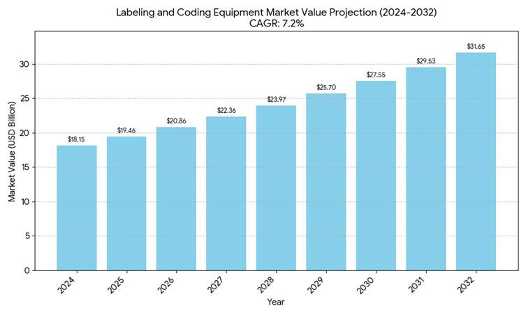 The Labeling and Coding Equipment Market, valued at USD 18.15 billion in 2024, is projected to reach USD 31.65 billion by 2032, growing at a CAGR of 7.2% during the forecast period, as per Credence Research. The market experiences strong demand driven by increasing automation in packaging and stringent regulatory compliance in various industries. Manufacturers focus on high-speed, precise, and flexible labeling and coding solutions to enhance operational efficiency. Rising adoption across pharmaceuticals, food and beverages, and consumer goods segments fuels growth, while technological innovations and integration with digital tracking systems further strengthen market expansion.
