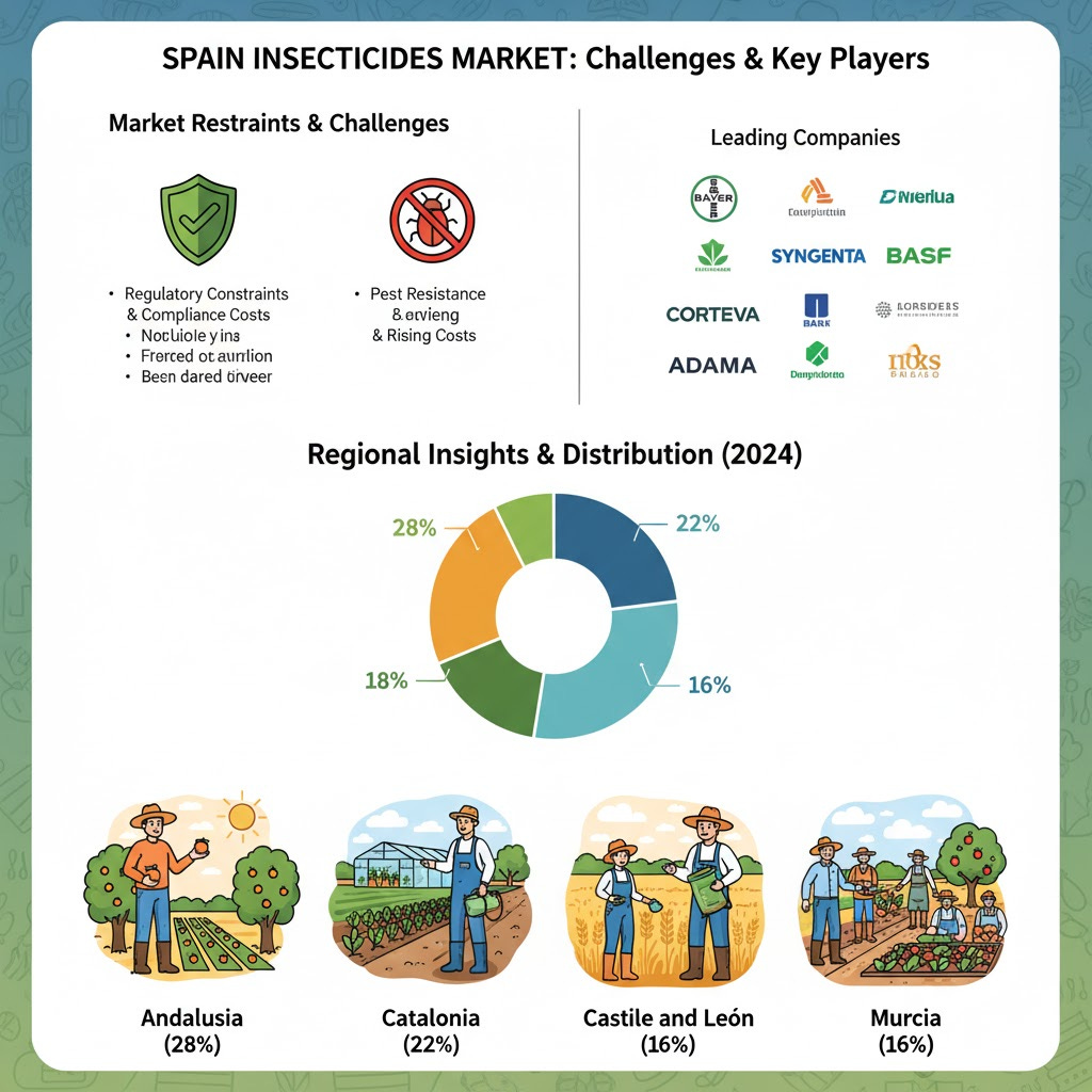 Andalusia dominates due to high horticulture and citrus cultivation. Retailers and cooperatives facilitate the distribution of advanced insecticides across farms.