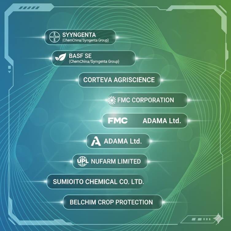 Bayer, Syngenta, BASF, Corteva, and FMC dominate with innovation, broad distribution, and strong farmer networks.