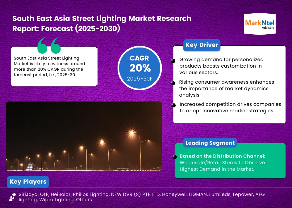 MarkNtel Advisors, a leading market research and consulting firm, has announced the release of its latest study titled South East Asia Street Lighting Market Research Report: Forecast (2025–2030). This report provides a detailed assessment of the South East Asia Street Lighting Market, covering its evolving dynamics, emerging trends, key growth drivers, major challenges, and competitive landscape.