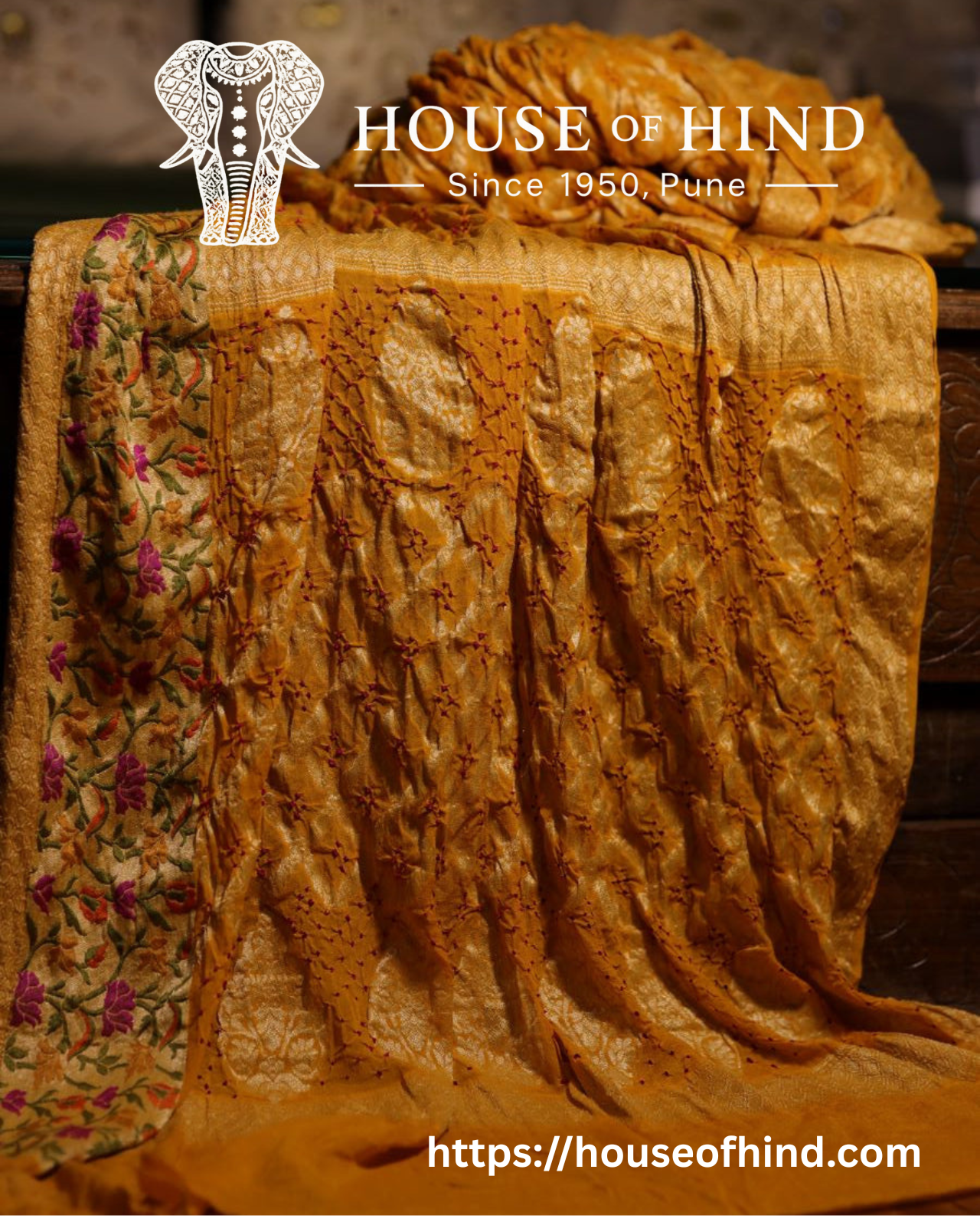 Among modern Indian designers, House of Hind stands out for blending artisanal weaving with contemporary design technology. Their Pitambari-inspired luxury sarees often use digital planning for patterns while ensuring every piece retains handmade soul.