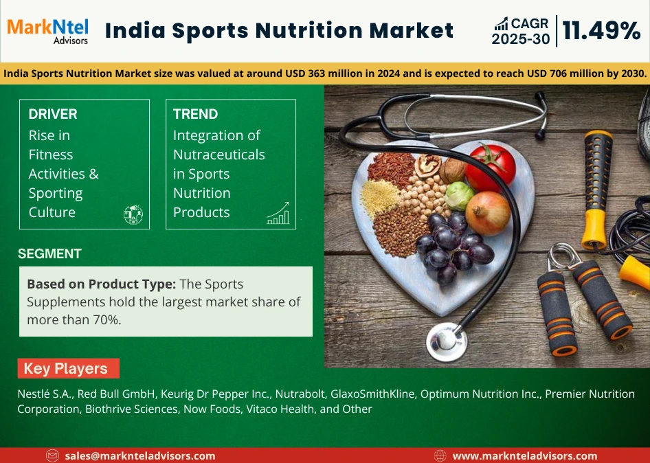MarkNtel Advisors Releases Comprehensive Study on the India Sports Nutrition Market, Forecasting Strong Growth from 2025-2030