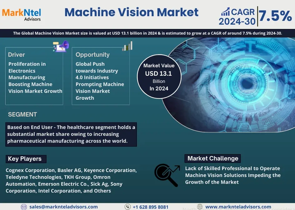 MarkNtel Advisors, a leading market research and consulting firm, has announced the release of its latest study titled Machine Vision Market Research Report: Forecast (2024–2030). This report provides a detailed assessment of the Machine Vision Market, covering its evolving dynamics, emerging trends, key growth drivers, major challenges, and competitive landscape.