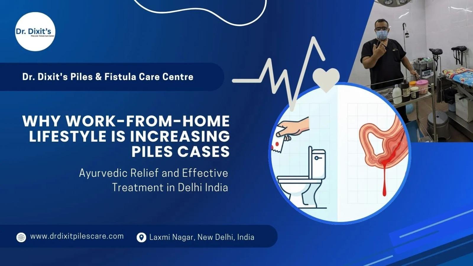 The work-from-home lifestyle has increased the risk of piles due to long sitting hours, poor diet, and lack of physical activity. Studies show that prolonged sitting can increase pressure on rectal veins and lead to hemorrhoids. Learn the causes, symptoms, and prevention tips in this informative blog by Dr. Dixit Piles Care. Read the full guide here: